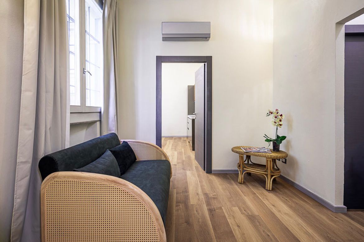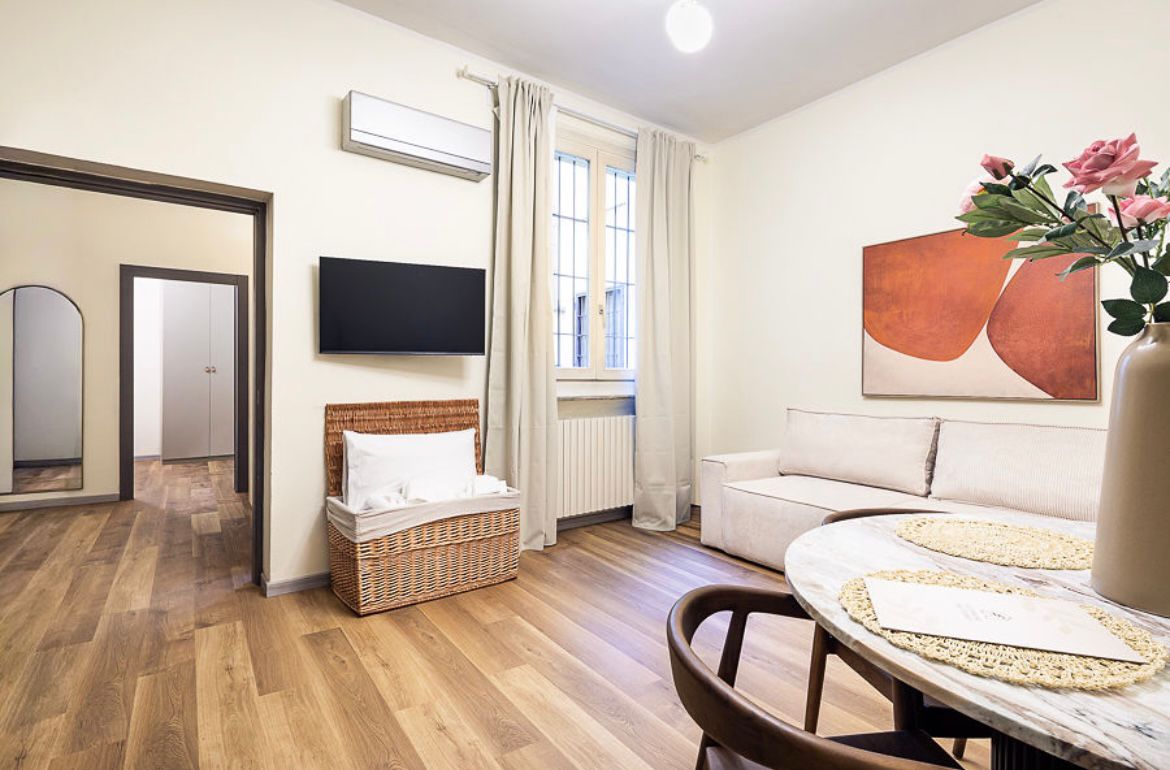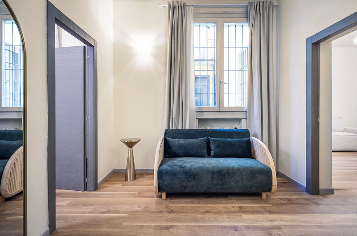 Ci troviamo nel cuore del centro storico di Parma, nei pressi di via Cavour, dove la committenza — già attiva nel settore degli affitti brevi tra Cremona, Casalmaggiore e Parma — ha scelto di trasformare un ufficio situato al piano terra in un accogliente pied-à-terre destinato alla locazione turistica.
